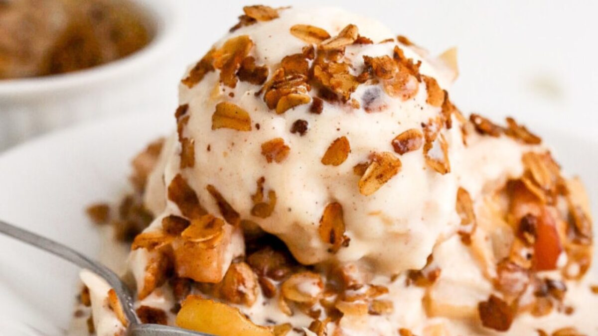 Enjoy a delicious and protein-packed treat with this Apple Pie Protein Ice Cream, made with Fairlife skim milk, unsweetened almond milk, and apple pie protein powder. Blended with sautéed apples and topped with an oat crumble, it’s a healthy twist on a classic dessert!
