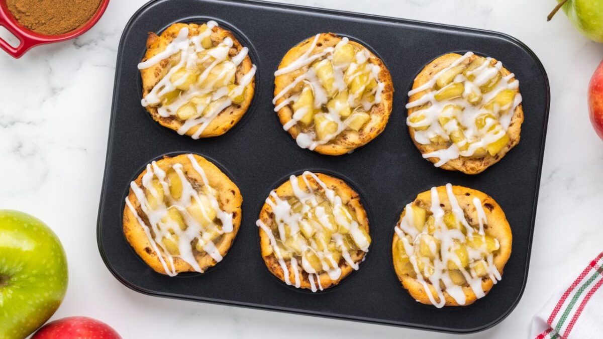 Cinnamon Roll Mini Apple Pies come together with just two ingredients—refrigerated cinnamon roll dough and apple pie filling. It’s an easy way to get all the flavors of apple pie without the extra steps.