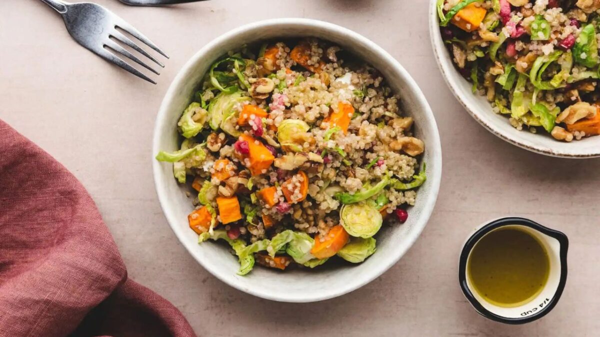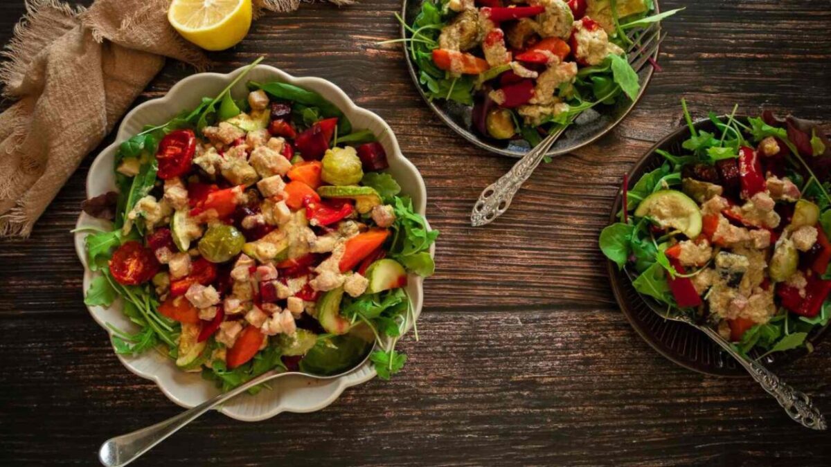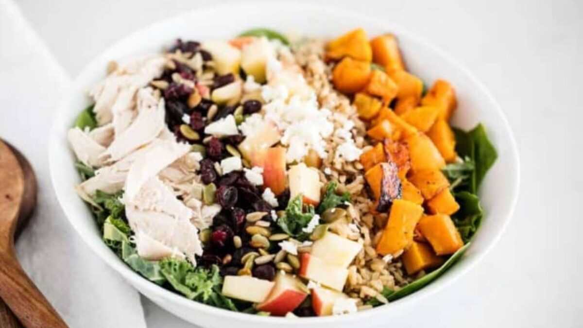 A perfect fall salad comprises a range of seasonal roasted veggies that can be easily replaced according to your preference and availability. This delicious salad is accompanied by an incredible homemade dressing and is ideal for lunch or even dinner when served along with a bowl of soup or stew.