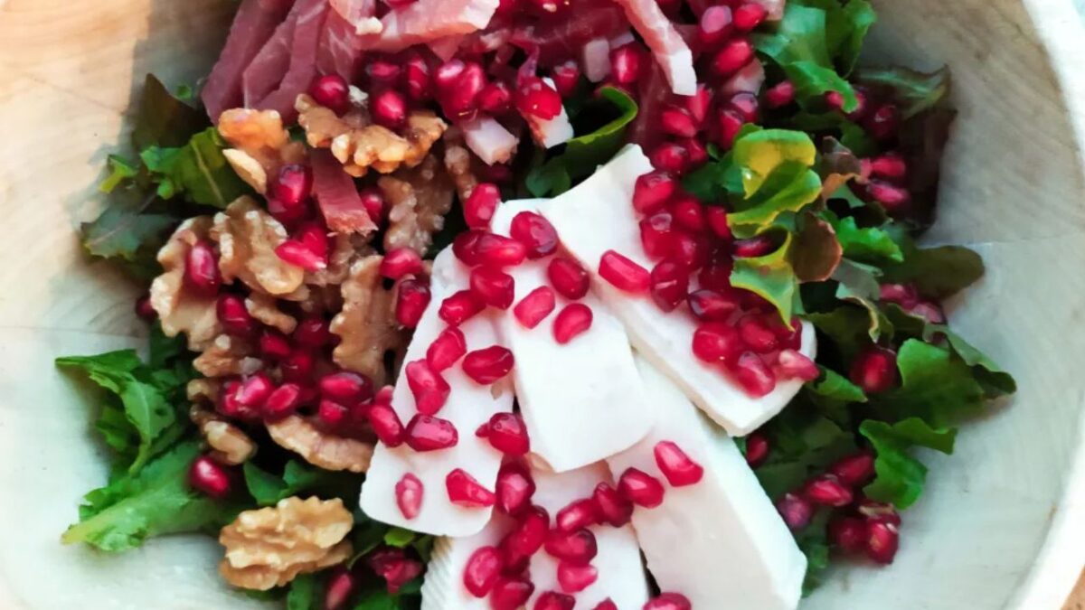 Pomegranate Speck and Cheese Salad