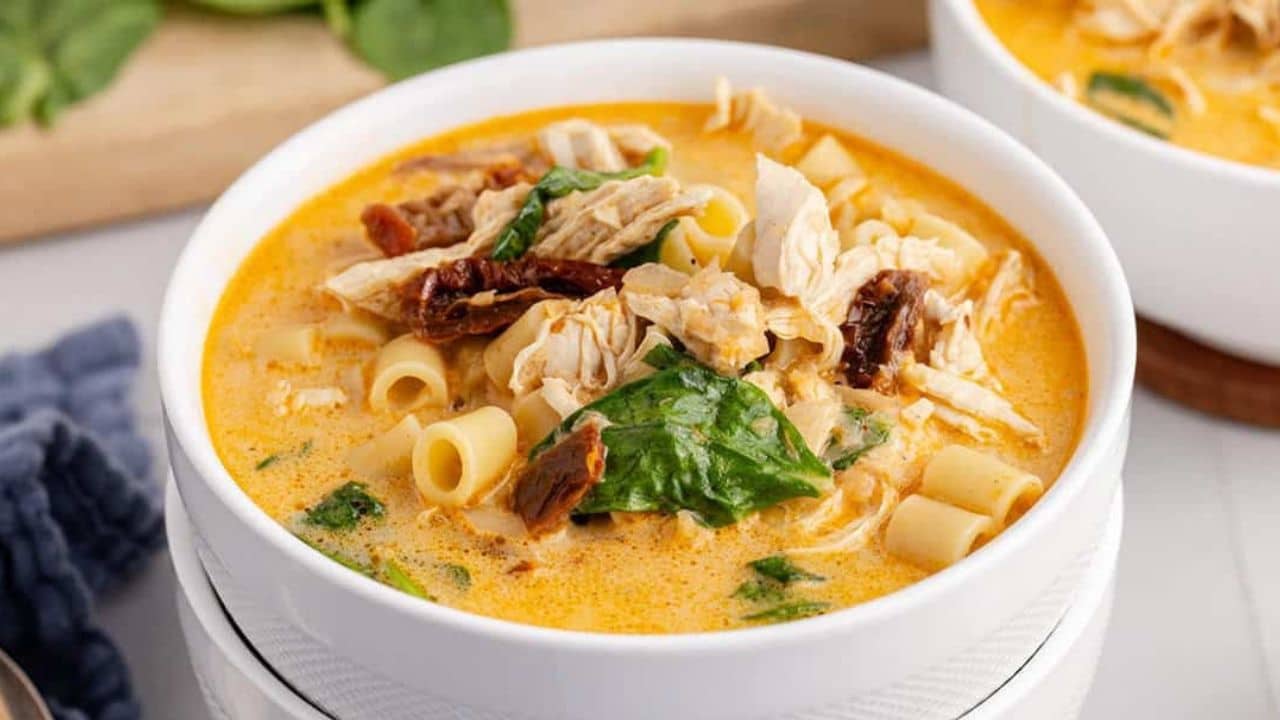 This Marry Me Chicken Soup is a creamy, flavorful soup made with tender chicken, sun-dried tomatoes, parmesan cheese and fresh spinach in a savory broth. With a creamy tomato broth and pasta, it’s the perfect bowl of comfort for any cozy night.