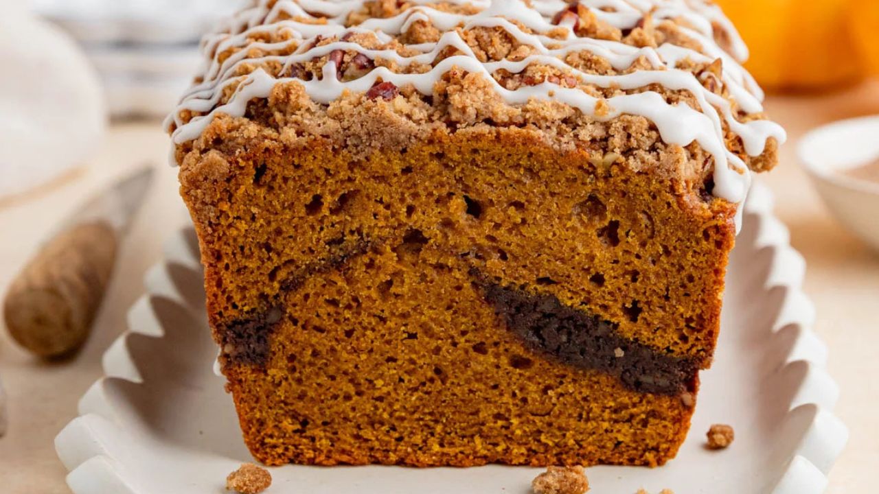 Get recipe: Pumpkin Bread with Streusel and Cinnamon Swirl