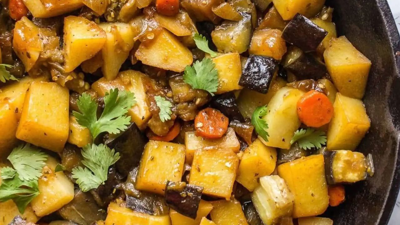 This comforting and hearty eggplant and potato recipe has tender potatoes, chewy eggplants, and flavorful aromatics. It’s the best vegan stew, made in under an hour. Perfect for busy weeknights or meal prep.