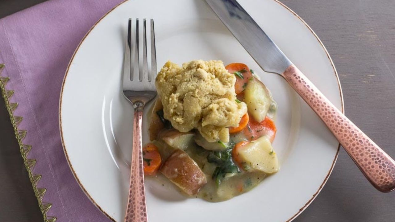 This vegan, gluten-free, low FODMAP pot pie is that and so much more. It is jam-packed with root vegetables (carrots, potatoes, parsnips), greens, meaty mushrooms, miso for umami, a light thyme-scented sauce, and unsweetened almond milk. It’s perfect for parties, potlucks, or when you need a little comfort food.
