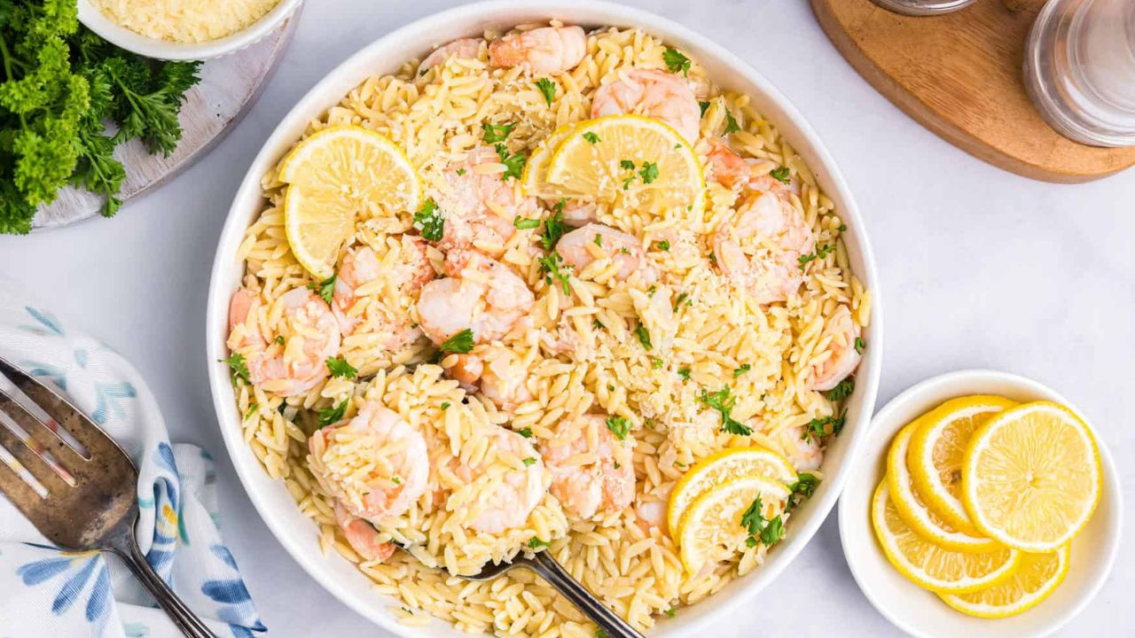 Lemon Shrimp and Orzo is a light, zesty shrimp recipe that mixes orzo pasta with garlic, shallot, shrimp, butter, lemon juice and white wine to create a simple, elegant and delicious meal. Serve this with crusty bread and grated Parmesan cheese.