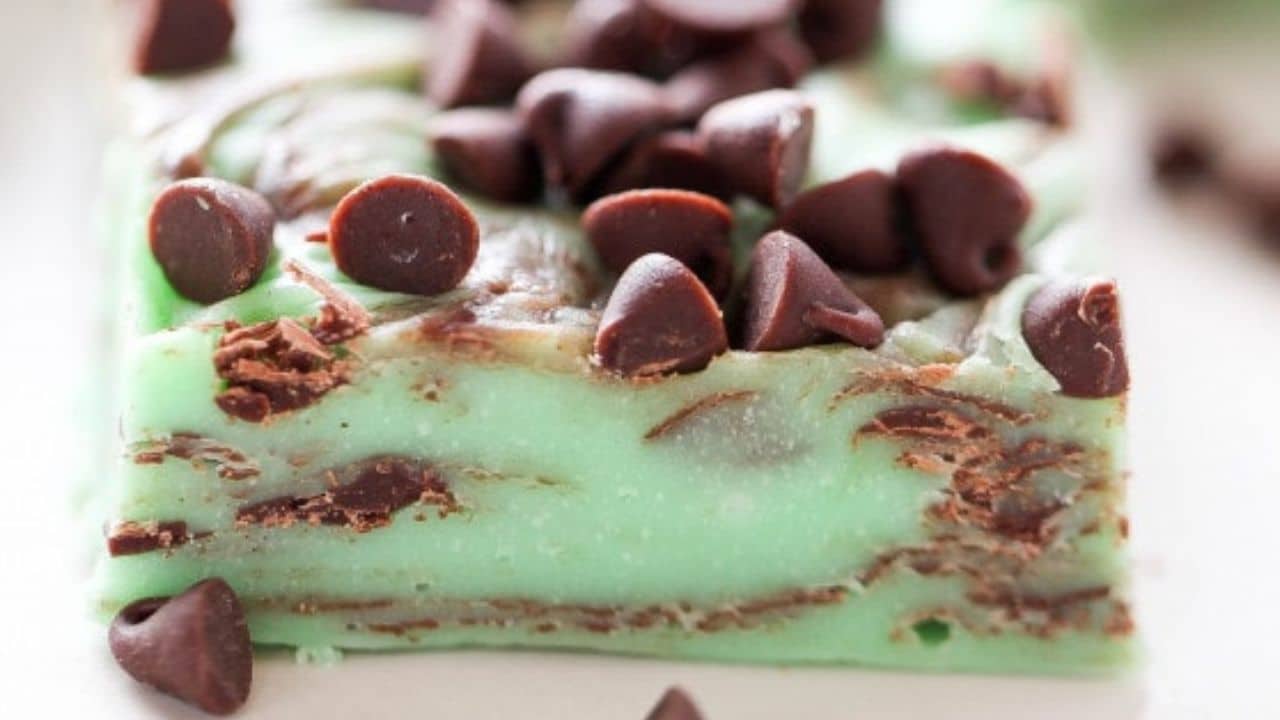 Mint Fudge: Cool , creamy,and bursting with a generous amount of chocolate chips. If you like mint chocolate chip ice cream, you’ll LOVE this fudge recipe.