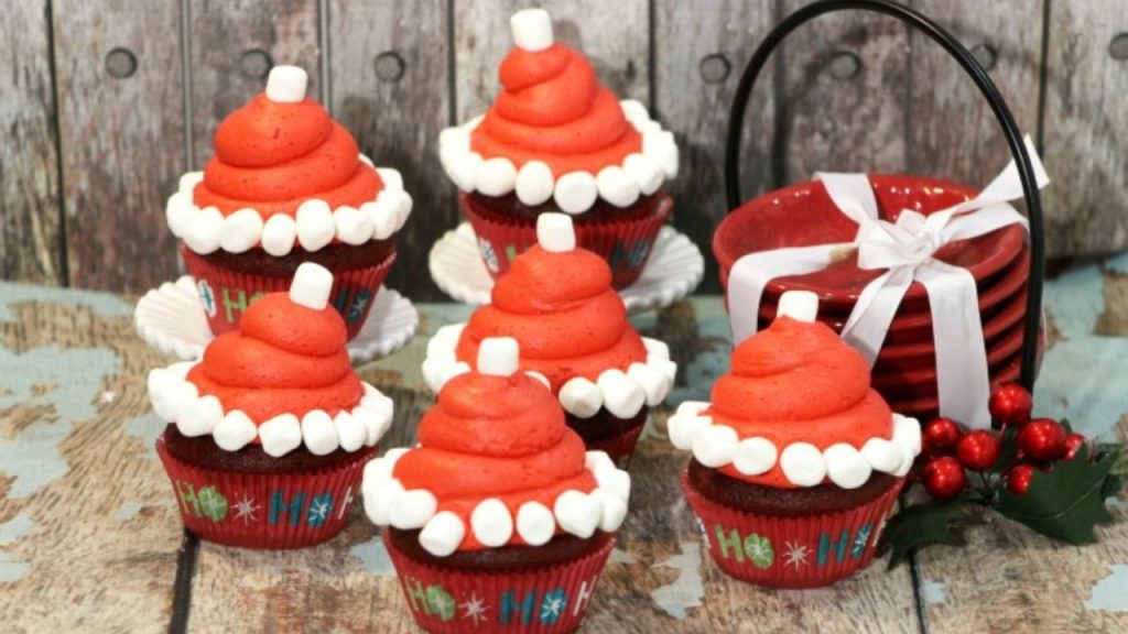 Festive, fun cupcakes that are perfect for Christmas parties, baking days, and holiday celebrations. Santa Hat Cupcake Recipe and Tutorial
