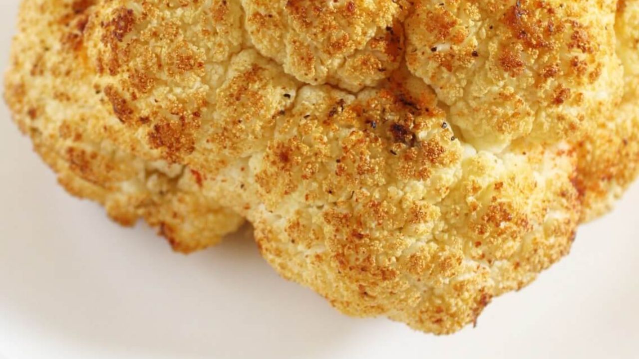 The best Whole Roasted Cauliflower Recipe! This easy vegan entree is naturally gluten-free, keto, and low-carb. Baked to tender and moist perfection, this budget-friendly vegetarian dish is made with just 3 ingredients including a head of cauliflower, olive oil, and a smokey Middle Eastern-inspired rub.